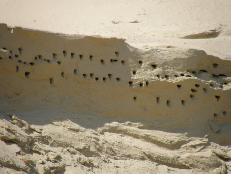 L’hirondelle de rivage, au niveau des berges des fleuves ou dans les carrières.